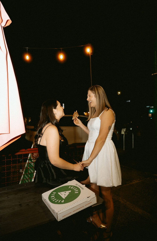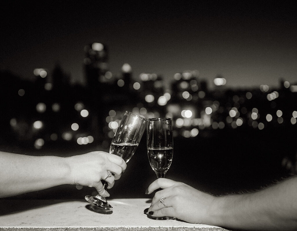 They popped a bottle of champagne, ate their pizza, danced, held each other, and let the skyline witness their love.